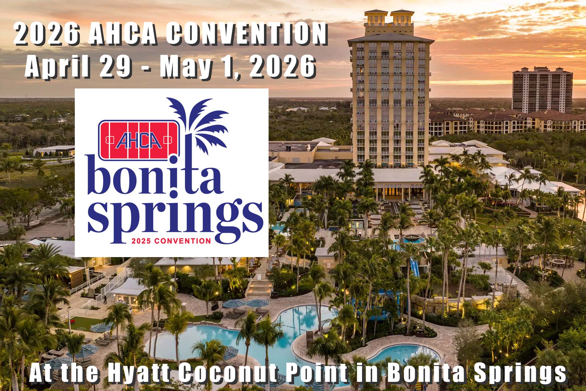 Mark your calendars for the 2026 AHCA Convention at the Hyatt Coconut Point in Bonita Springs, FL!!